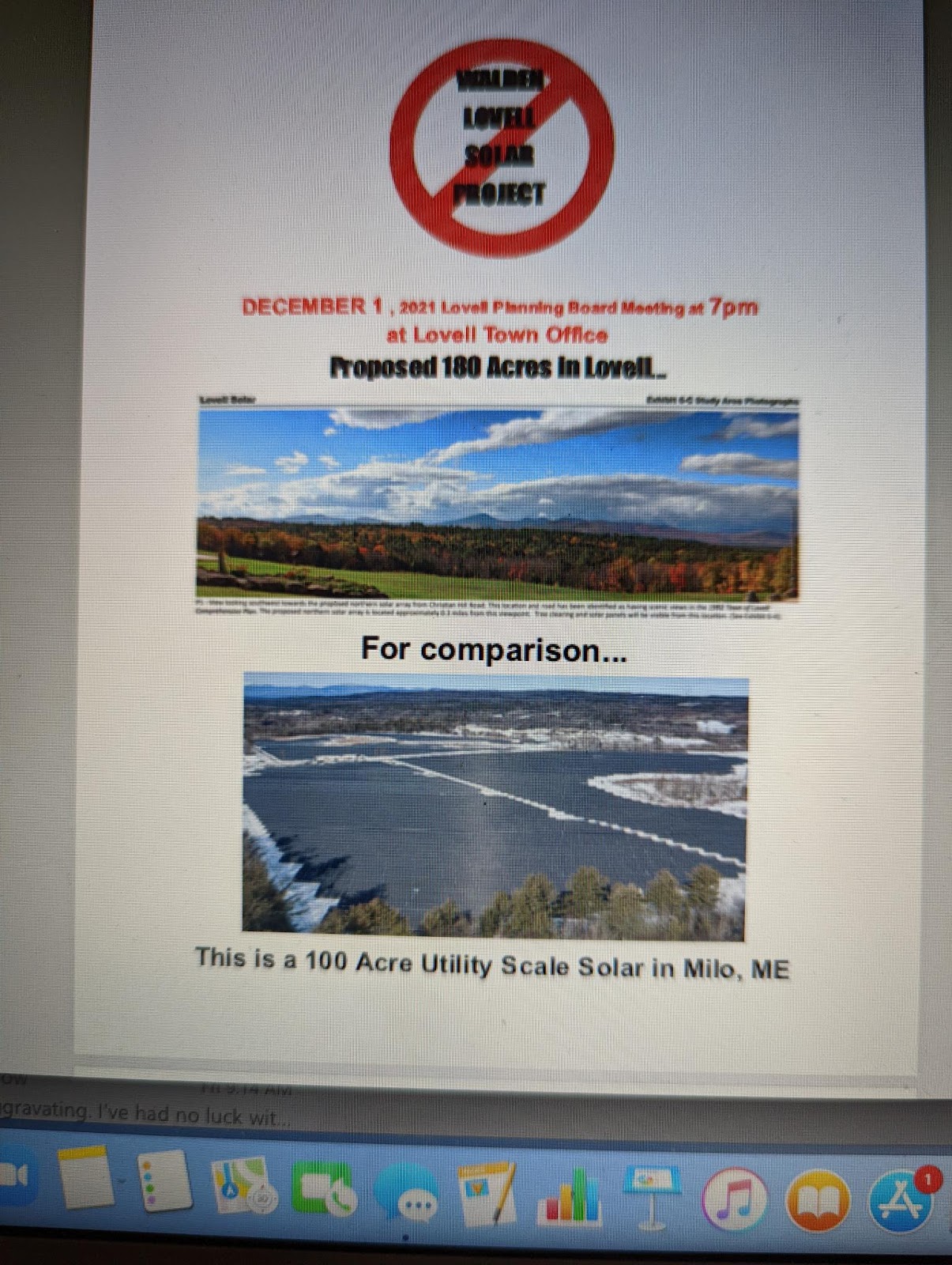 Lately we’re learning the drawbacks of industrial solar farms already built, under construction, and proposed in Maine. They’re noisy. They’re huge: The one proposed for Lovell would cover and area twice the size of the one in Fryeburg. Walden Renewables, the firm that got the enormous Fryeburg project approved, has sold it to a Canadian firm while it’s still being built. They promise, however, they wouldn’t do that to Lovell and we can trust them, right?